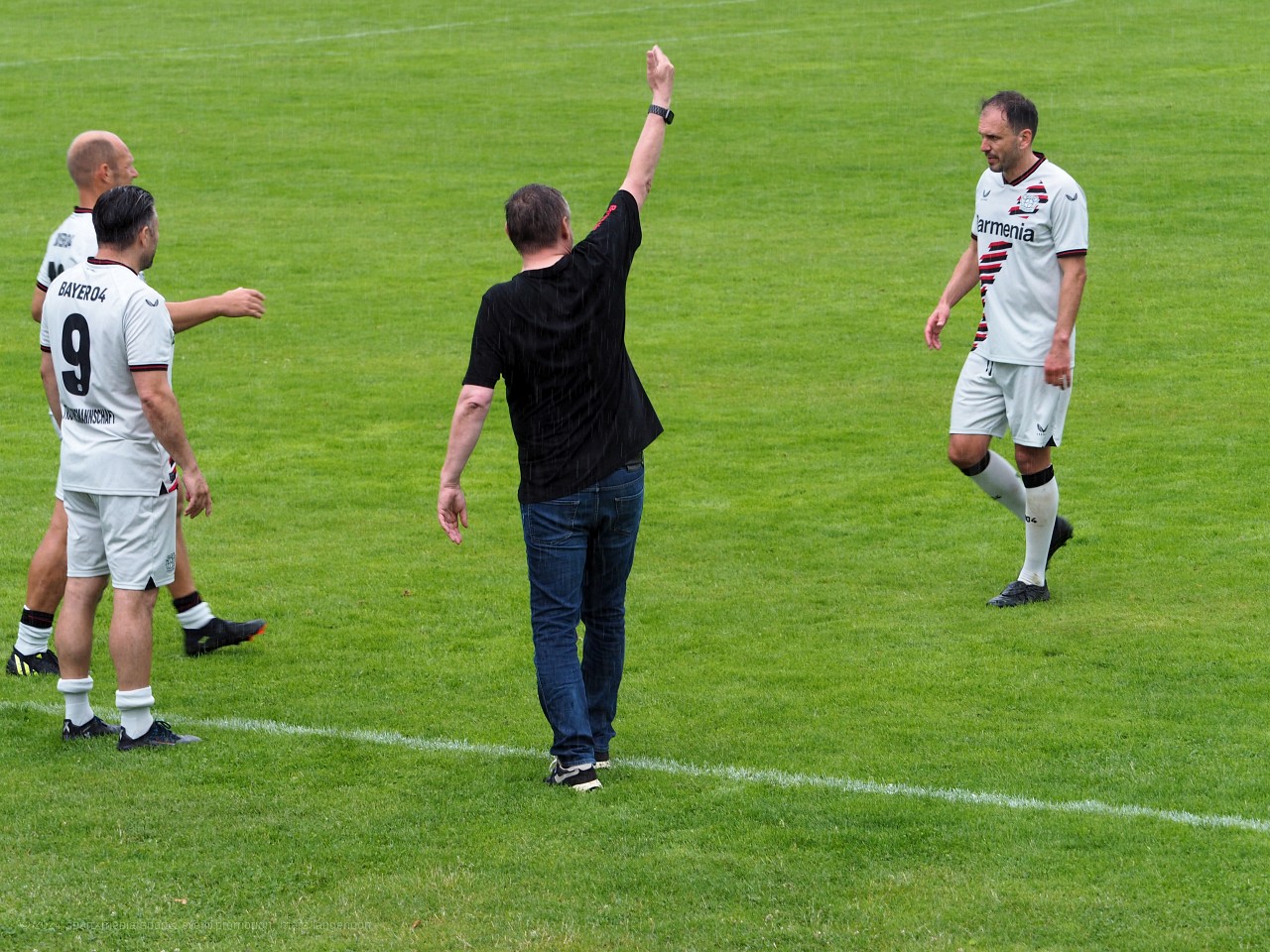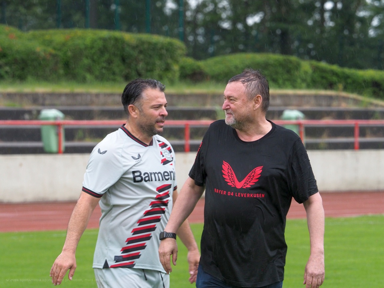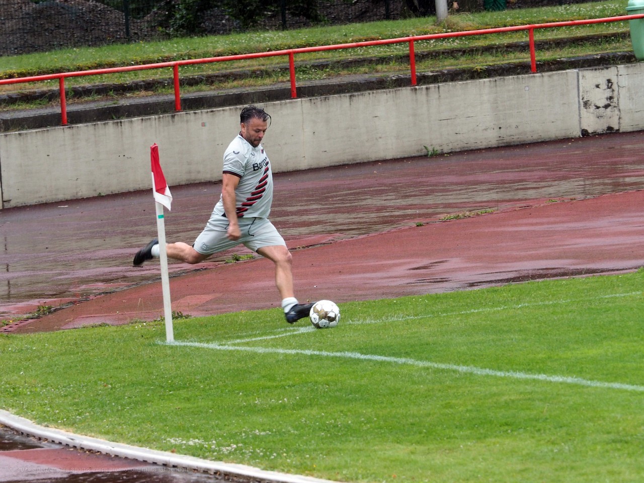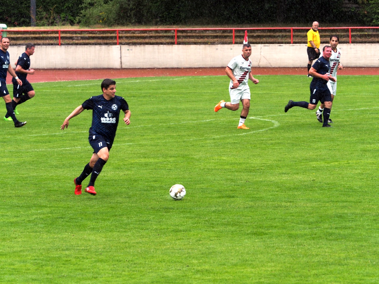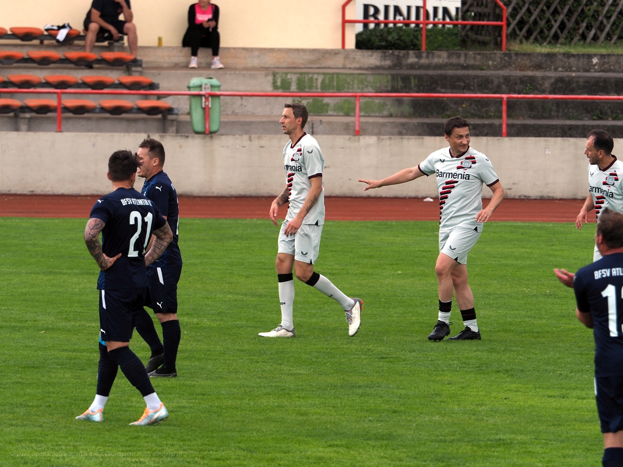 Das Tor zählte dann aber nicht, weil der Linienrichter eine Abseitsstellung eines Bayer Spielers monierte. Mit zunehmender Spieldauer fing es heftig an zu regnen, was aber am guten Niveau des Spiels nichts änderte. In der 10. Minute dann eine Riesenchance für den BFSV Atlantik, als ein Leverkusener Akteur gerade noch auf der Linie zur Ecke retten konnte. Die Ecke führte dann zum 1:0 für die Norddeutschen. Ein Kopfball eines Atlantik Angreifers landete unhaltbar für den Bayer Keeper im Tor. Zu diesem Zeitpunkt hieß der neue Deutsche Ü-40 Pokalsieger BFSV Atlantik 97. In der 14. Minute scheiterte Stefan Kießling mit einem fulminanten Schuss an BFSV Torhüter Danny Yayer. In der 15. Minute dann der Ausgleich für Leverkusen.