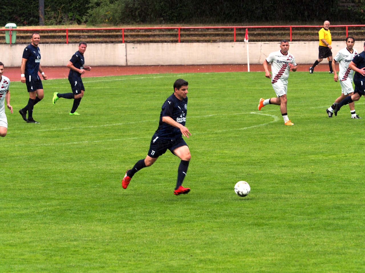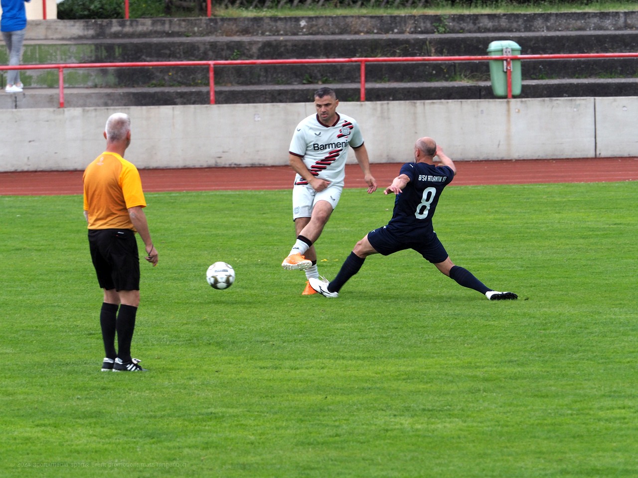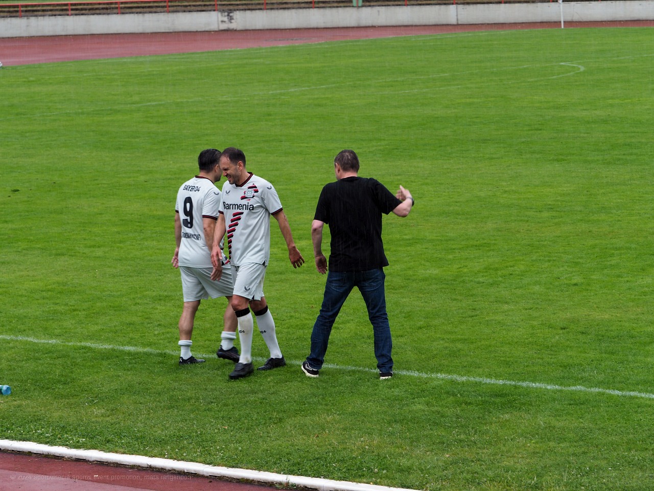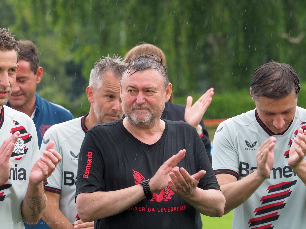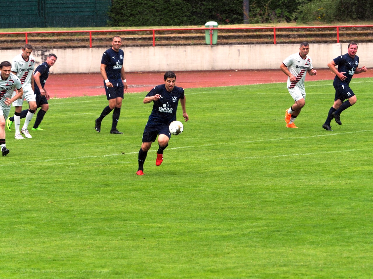Das Tor zählte dann aber nicht, weil der Linienrichter eine Abseitsstellung eines Bayer Spielers monierte. Mit zunehmender Spieldauer fing es heftig an zu regnen, was aber am guten Niveau des Spiels nichts änderte. In der 10. Minute dann eine Riesenchance für den BFSV Atlantik, als ein Leverkusener Akteur gerade noch auf der Linie zur Ecke retten konnte. Die Ecke führte dann zum 1:0 für die Norddeutschen. Ein Kopfball eines Atlantik Angreifers landete unhaltbar für den Bayer Keeper im Tor. Zu diesem Zeitpunkt hieß der neue Deutsche Ü-40 Pokalsieger BFSV Atlantik 97. In der 14. Minute scheiterte Stefan Kießling mit einem fulminanten Schuss an BFSV Torhüter Danny Yayer. In der 15. Minute dann der Ausgleich für Leverkusen.