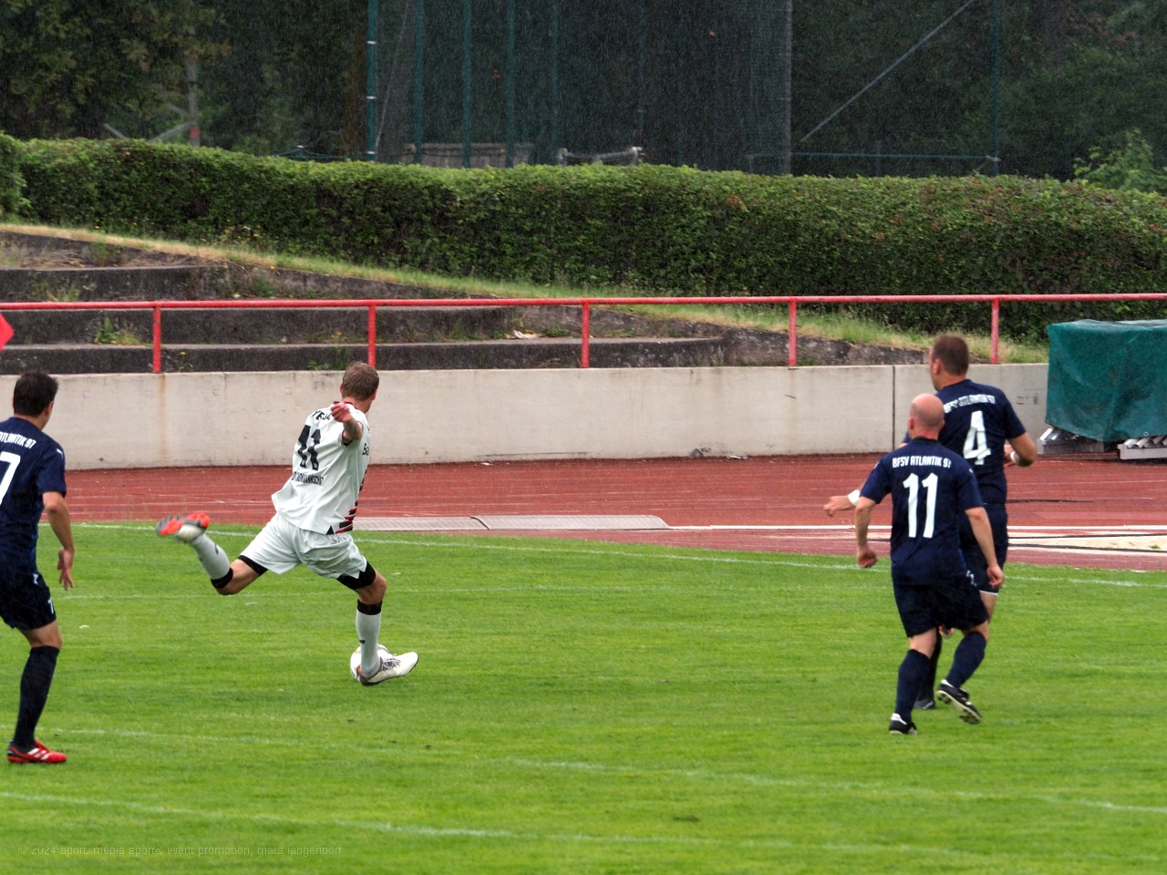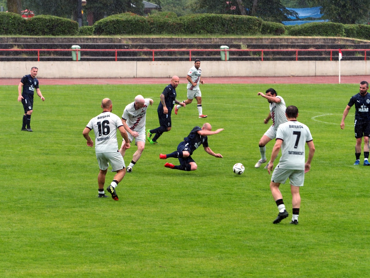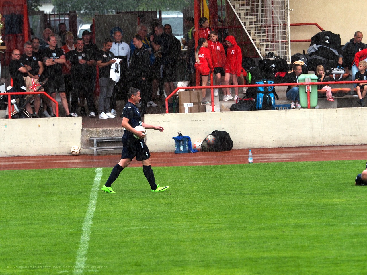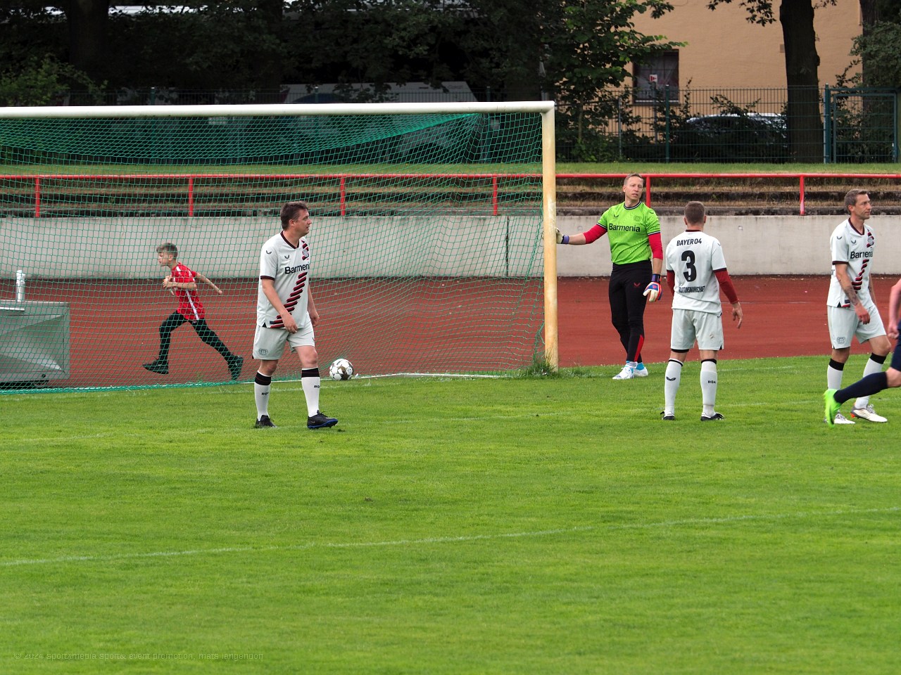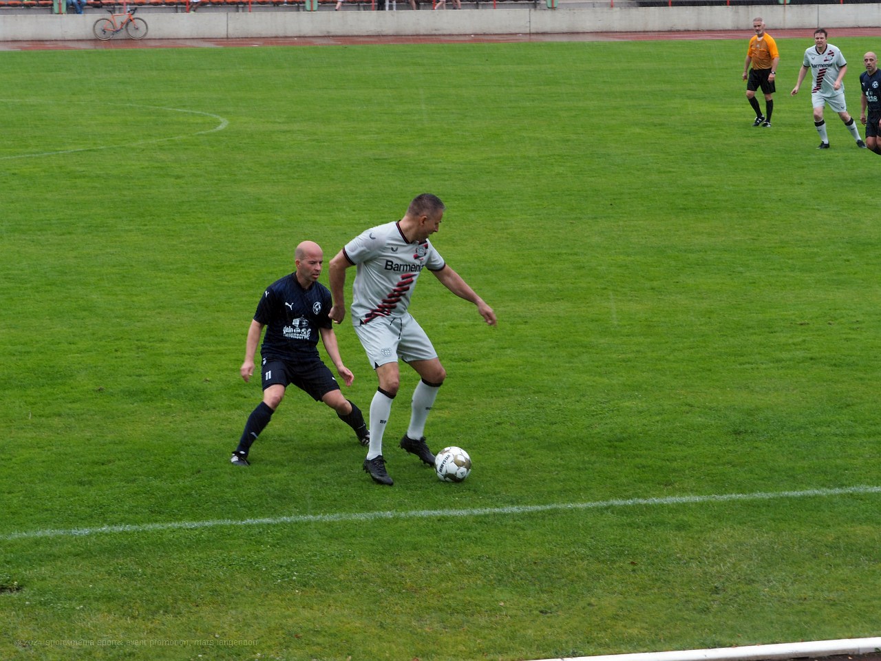 Das Tor zählte dann aber nicht, weil der Linienrichter eine Abseitsstellung eines Bayer Spielers monierte. Mit zunehmender Spieldauer fing es heftig an zu regnen, was aber am guten Niveau des Spiels nichts änderte. In der 10. Minute dann eine Riesenchance für den BFSV Atlantik, als ein Leverkusener Akteur gerade noch auf der Linie zur Ecke retten konnte. Die Ecke führte dann zum 1:0 für die Norddeutschen. Ein Kopfball eines Atlantik Angreifers landete unhaltbar für den Bayer Keeper im Tor. Zu diesem Zeitpunkt hieß der neue Deutsche Ü-40 Pokalsieger BFSV Atlantik 97. In der 14. Minute scheiterte Stefan Kießling mit einem fulminanten Schuss an BFSV Torhüter Danny Yayer. In der 15. Minute dann der Ausgleich für Leverkusen.