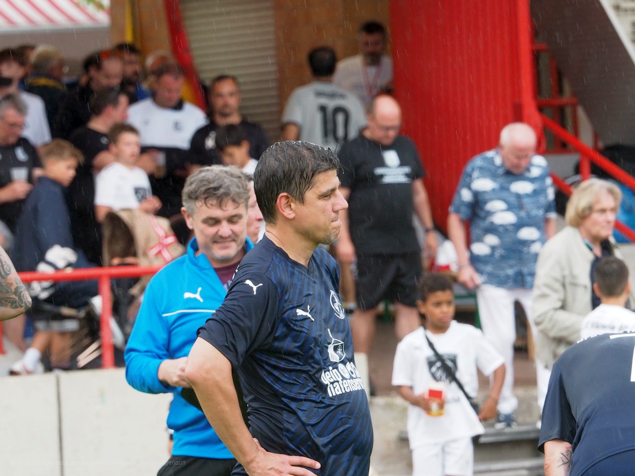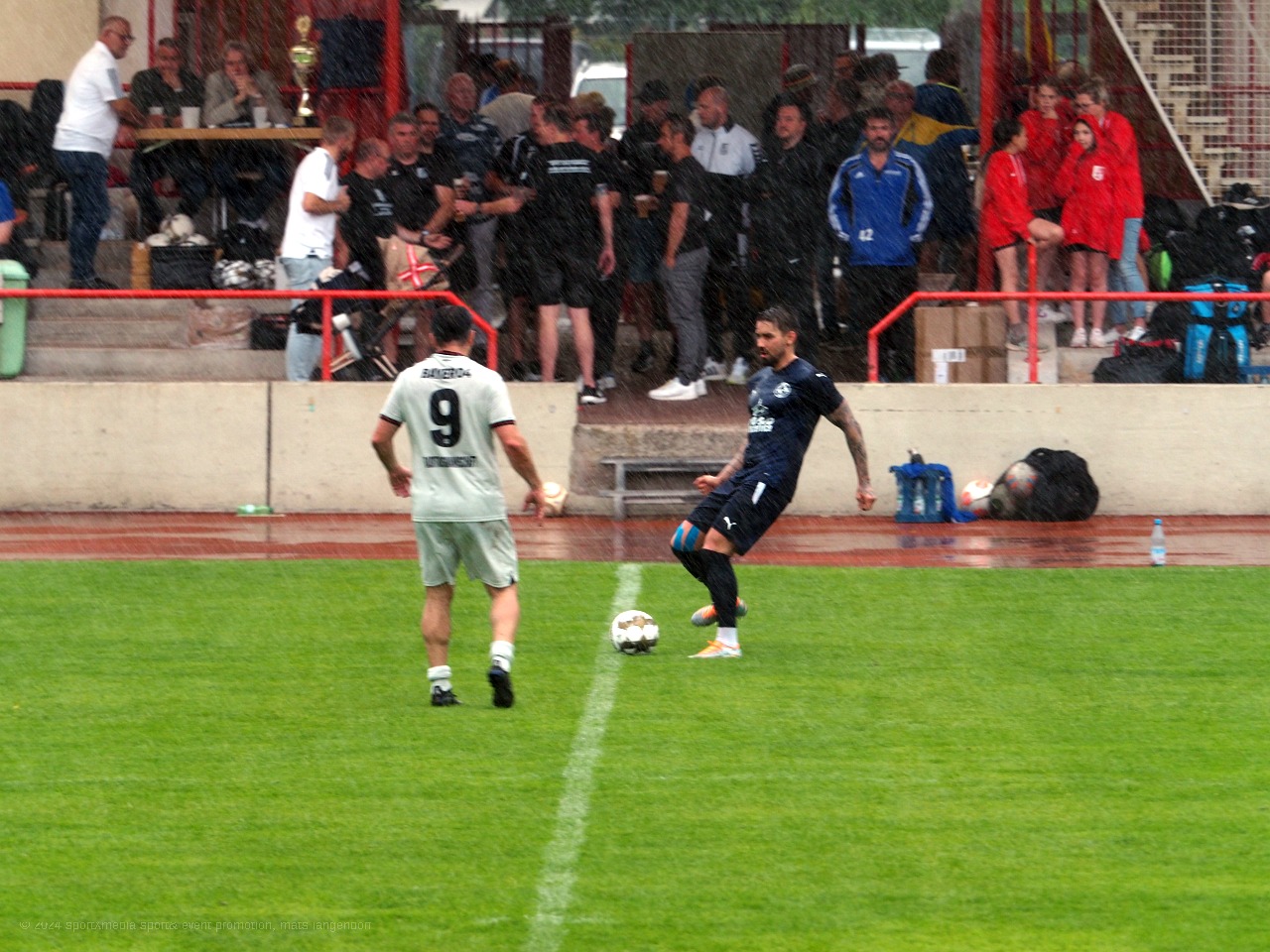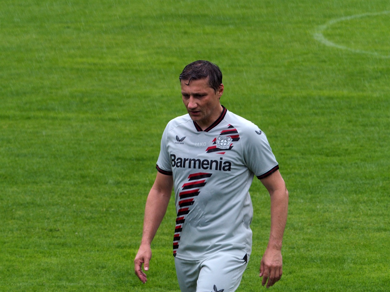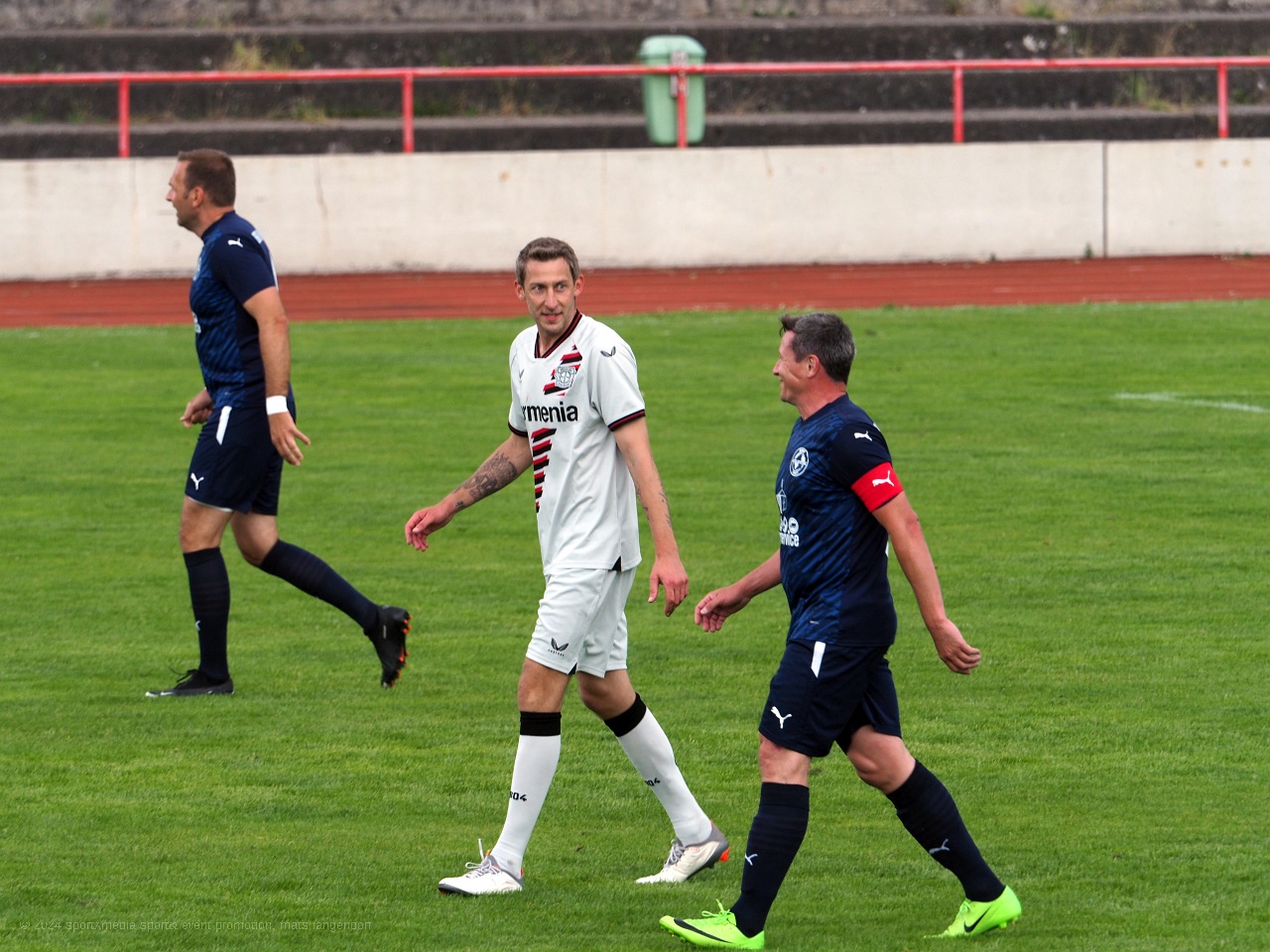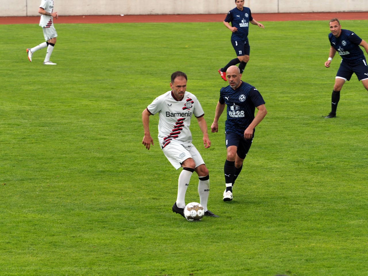 Das Tor zählte dann aber nicht, weil der Linienrichter eine Abseitsstellung eines Bayer Spielers monierte. Mit zunehmender Spieldauer fing es heftig an zu regnen, was aber am guten Niveau des Spiels nichts änderte. In der 10. Minute dann eine Riesenchance für den BFSV Atlantik, als ein Leverkusener Akteur gerade noch auf der Linie zur Ecke retten konnte. Die Ecke führte dann zum 1:0 für die Norddeutschen. Ein Kopfball eines Atlantik Angreifers landete unhaltbar für den Bayer Keeper im Tor. Zu diesem Zeitpunkt hieß der neue Deutsche Ü-40 Pokalsieger BFSV Atlantik 97. In der 14. Minute scheiterte Stefan Kießling mit einem fulminanten Schuss an BFSV Torhüter Danny Yayer. In der 15. Minute dann der Ausgleich für Leverkusen.