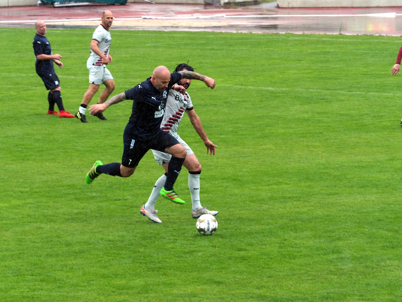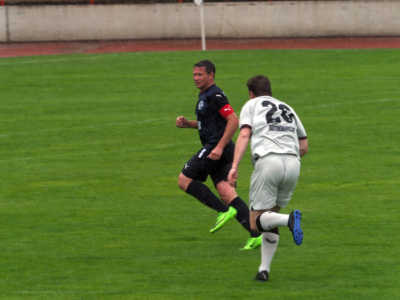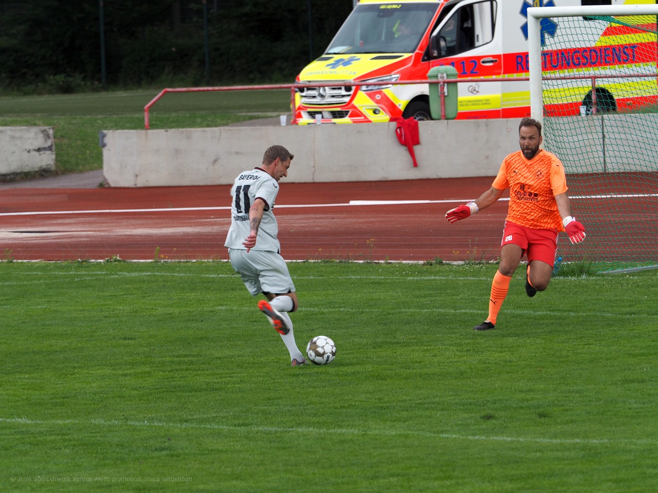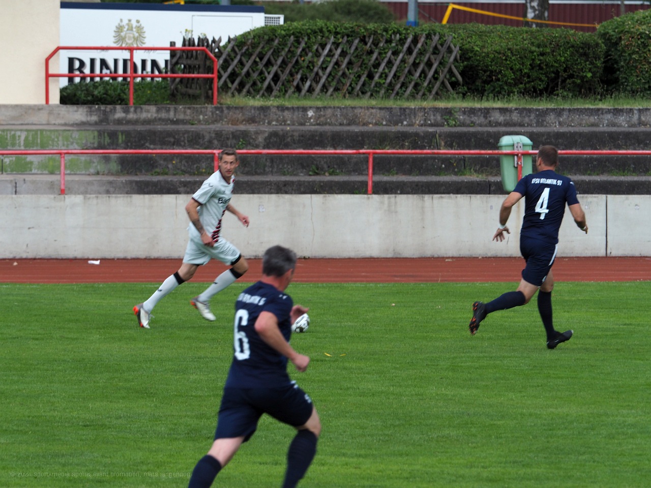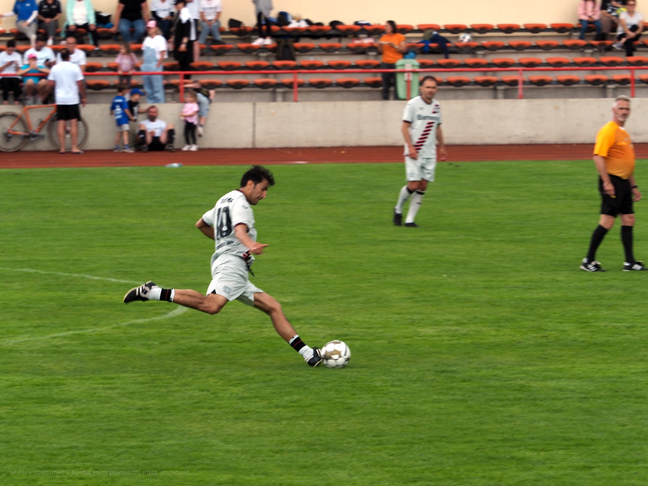 Das Tor zählte dann aber nicht, weil der Linienrichter eine Abseitsstellung eines Bayer Spielers monierte. Mit zunehmender Spieldauer fing es heftig an zu regnen, was aber am guten Niveau des Spiels nichts änderte. In der 10. Minute dann eine Riesenchance für den BFSV Atlantik, als ein Leverkusener Akteur gerade noch auf der Linie zur Ecke retten konnte. Die Ecke führte dann zum 1:0 für die Norddeutschen. Ein Kopfball eines Atlantik Angreifers landete unhaltbar für den Bayer Keeper im Tor. Zu diesem Zeitpunkt hieß der neue Deutsche Ü-40 Pokalsieger BFSV Atlantik 97. In der 14. Minute scheiterte Stefan Kießling mit einem fulminanten Schuss an BFSV Torhüter Danny Yayer. In der 15. Minute dann der Ausgleich für Leverkusen.